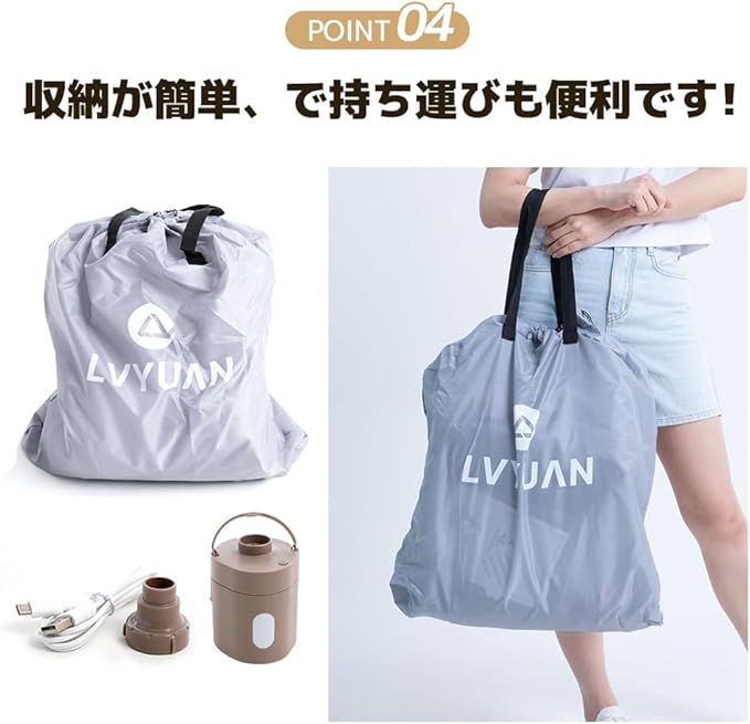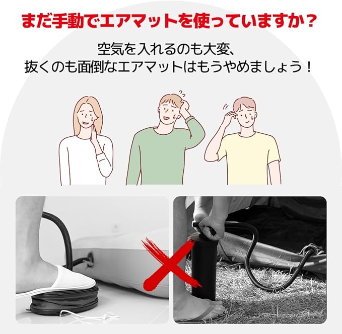 ☀セット内容: 電動エアーベッド本体、ノズル、電動ポンプ、Type-c充電ケーブル、収納袋、日本語説明書 電動ポンプ :お客様のお自宅のエアー製品でも空気入り/空気抜けることができます。