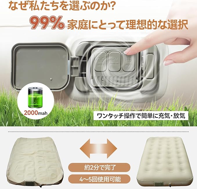 特徴 お手入れ簡単, クイック収縮, クイック膨張, ポンプ内蔵, ワンタッチ操作