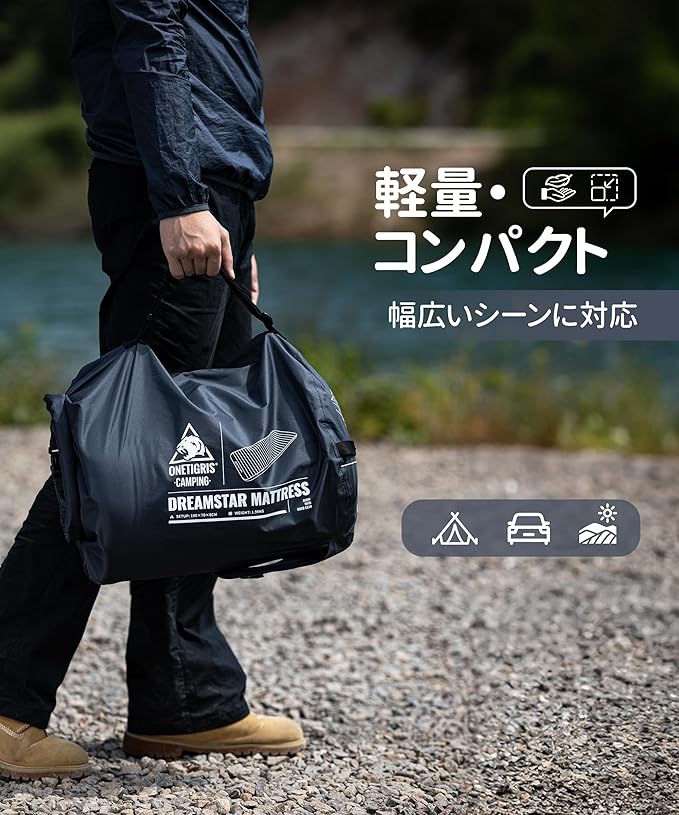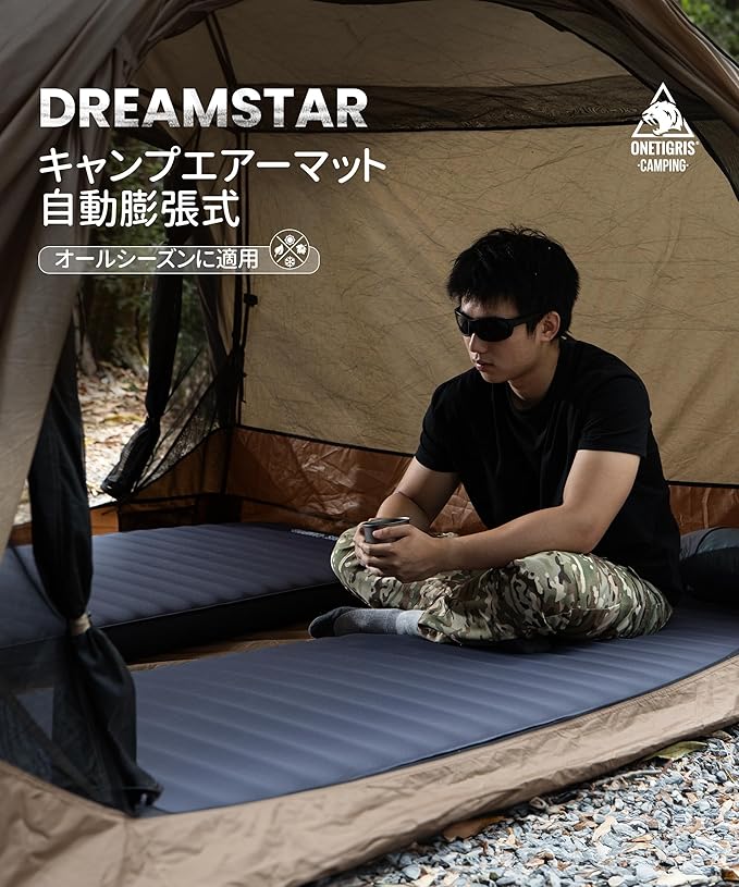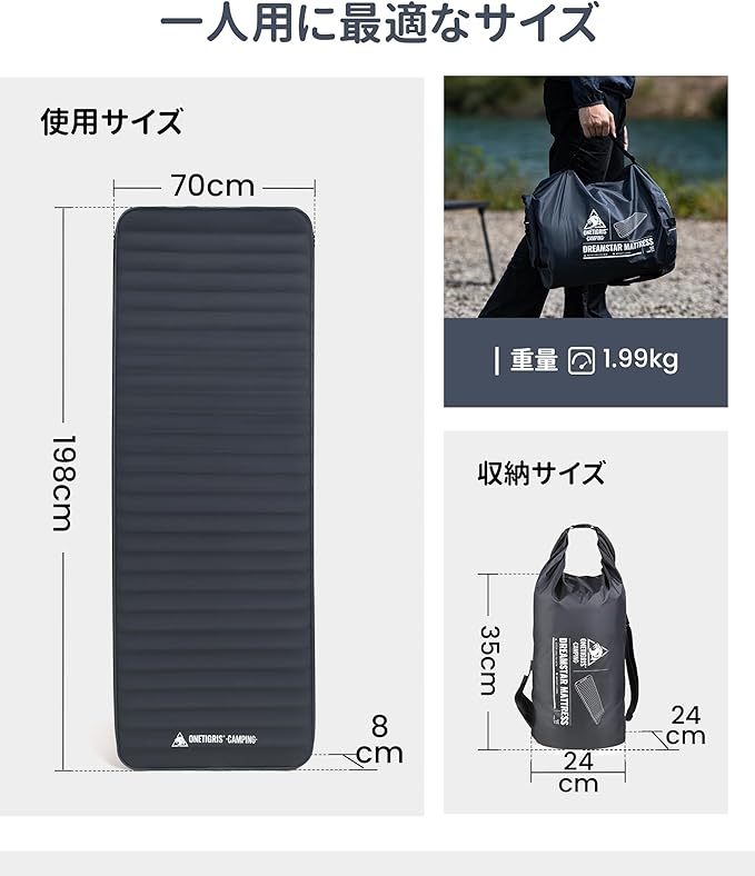 OneTigris DREAMSTAR エアーマット 30秒自動膨張 1人用 エアーベッド 高R値 高反発 耐荷重100kg 8cm厚手 無臭 快適 静音 滑り止め オールシーズン 198*70cm ポンプ機能収納袋付き キャンプ/ツーリング/レジャー/車中泊用 | KAZESHOP