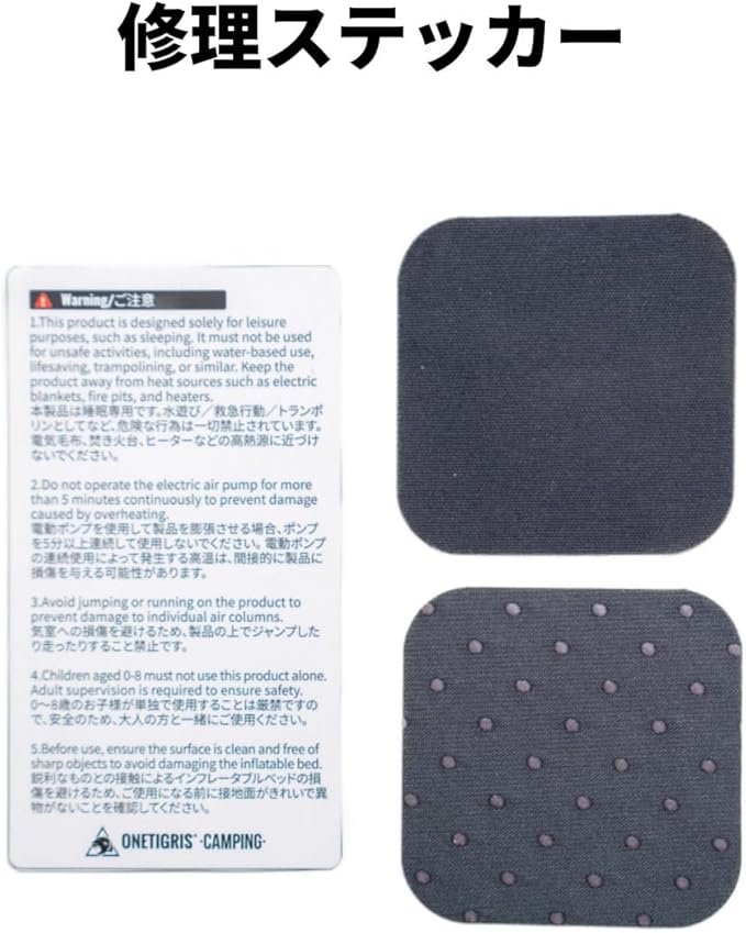 【製品仕様】素材:30Dポリエステル、190Tポンジー生地;充填物:高反発フォーム;重量:1.99kg;使用サイズ:198*70*8cm、収納サイズ:35*24*24cm;R値:6.3;耐荷重:約100kg;セット内容:エアーマット*1、インフレータブルバッグ *1、収納バンド*2、修理ステッカー*2