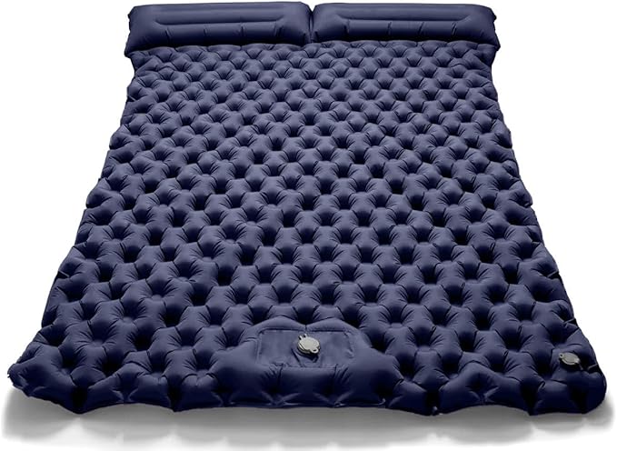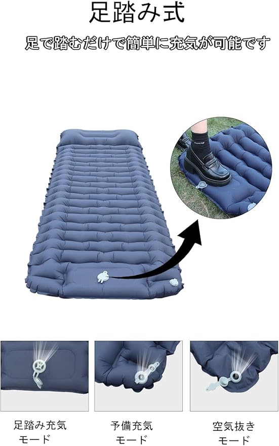 足踏み式 エアーベッド キャンプ マット シングル(30s膨らむ・約120*200*7cm), エアーマット 車中泊 防災 枕付き コンパクト 防水 持ち運び便利 災害 登山 アウトドア テント用 キャンプ用品 ダークブルー | KAZESHOP