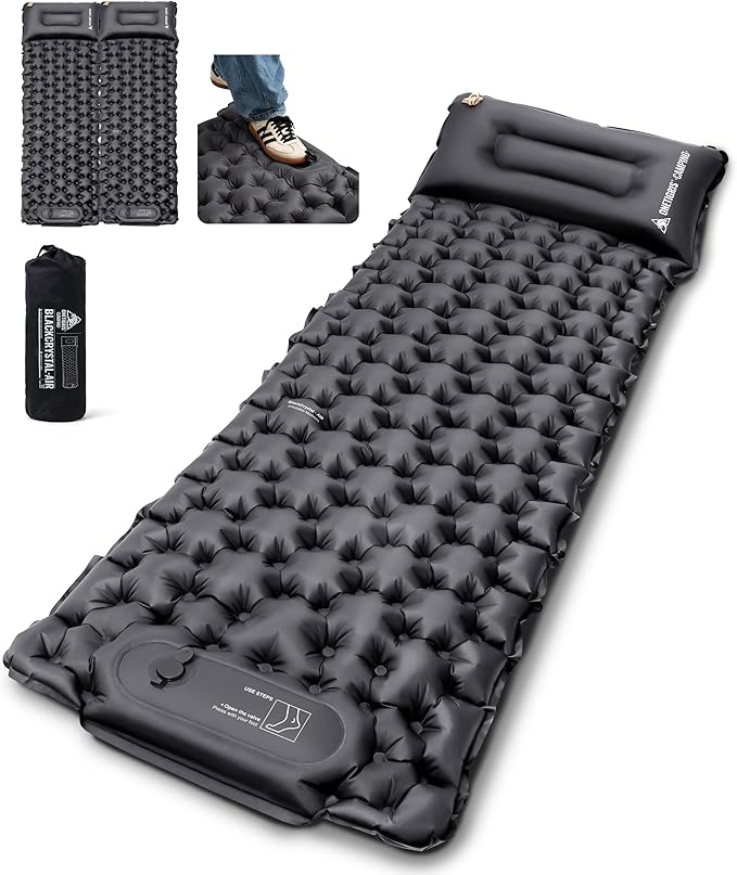 OneTigris BLACKCRYSTAL エアーマット 足踏み式 キャンプマット 無限連結 枕付き 196 x 60 x 13/6.5 cm 防水 軽量 コンパクト収納 収納袋付き 持ち運び便利 アウトドア ソロキャンプ ファミリーキャンプ 車中泊 来客用 防災用 | KAZESHOP