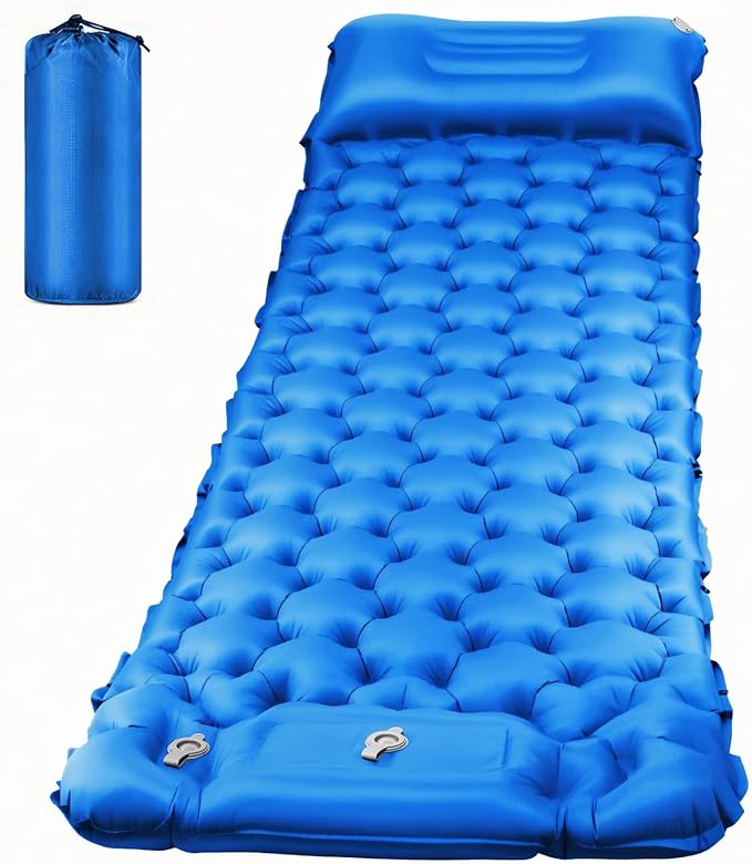 エアーマット 防災マット【新型2025・R値4.0断熱・厚さ10cm】 足踏み式エアーマット 枕付き コンパクト収納 車中泊 登山 キャンプ 防水仕様 blue