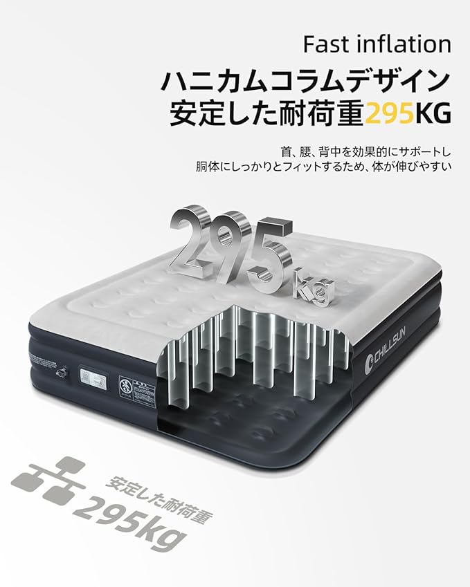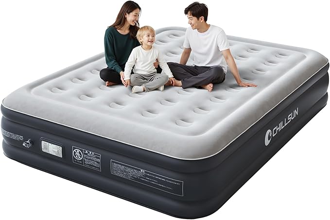 CHILLSUNの優れたエアマットレスであなたの睡眠体験を向上させましょう。アウトドア愛好家と屋内のゲストの両方のために設計されており、キャンプ用品の必需品に最適です。ポータブルベッド、折りたたみ式マットレス、ゲスト用ベッドがすべて1つになっています。私たちの膨脹可能なマットレスの快適さと信頼性を今日発見し、あなたの睡眠経験を再定義してください。