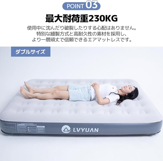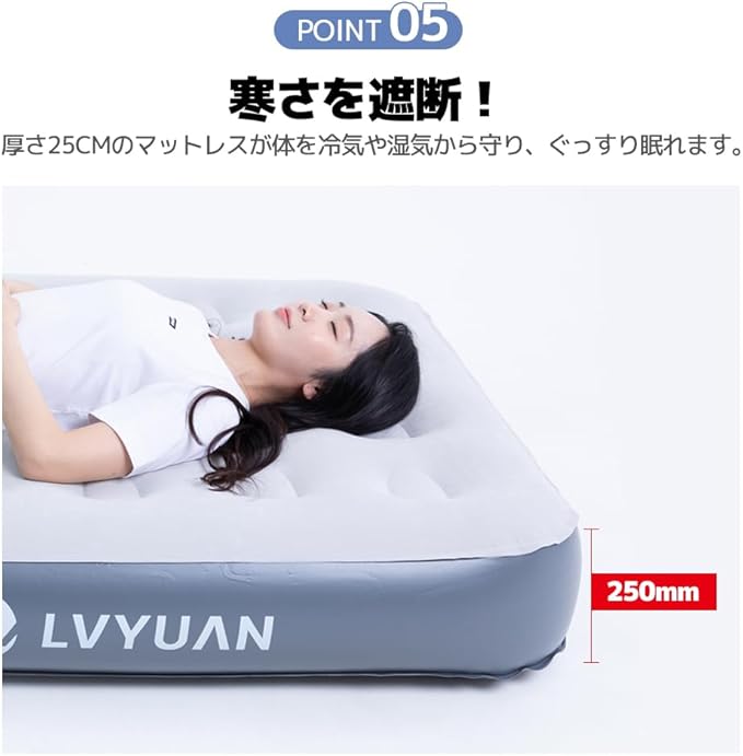 LVYUAN(リョクエン)エアーベッド25cm厚 電動ポンプ内蔵 USB充電式 ダブルサイズ 空気ベッドエアーマット 折りたたみ インフレーターマットコードレス 60秒自動膨張 耐荷重230KG 収納袋付き 来客用 予備ベッド・家庭用・キャンプ・車中泊・アウトドアに最適 | KAZESHOP