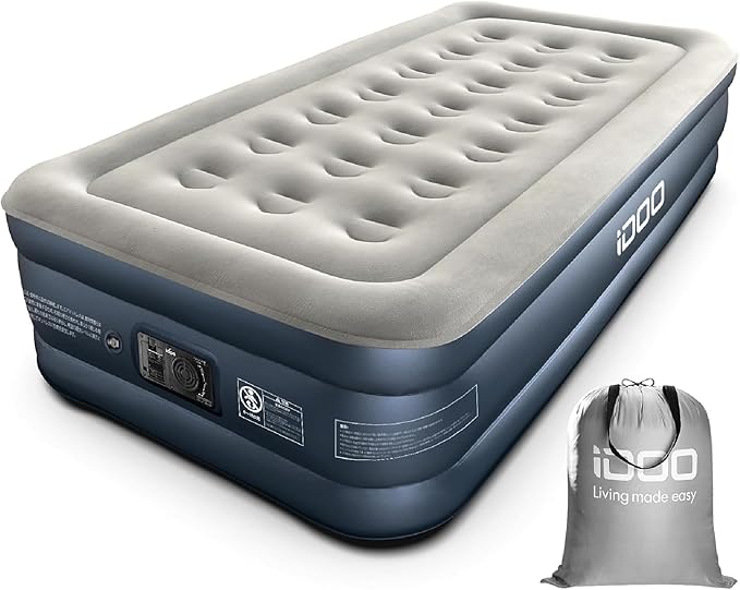 iDOO エアーベッド 空気ベッド シングル 電動ポンプ内蔵 フロック表面加工 耐久 安定 エアーマット 長さ188x幅99x厚さ46cm 厚手 人気 快適な寝心地 折り畳み 収納バッグ付き キャンプ 予備ベッド 家庭用 来客 防災用 | KAZESHOP