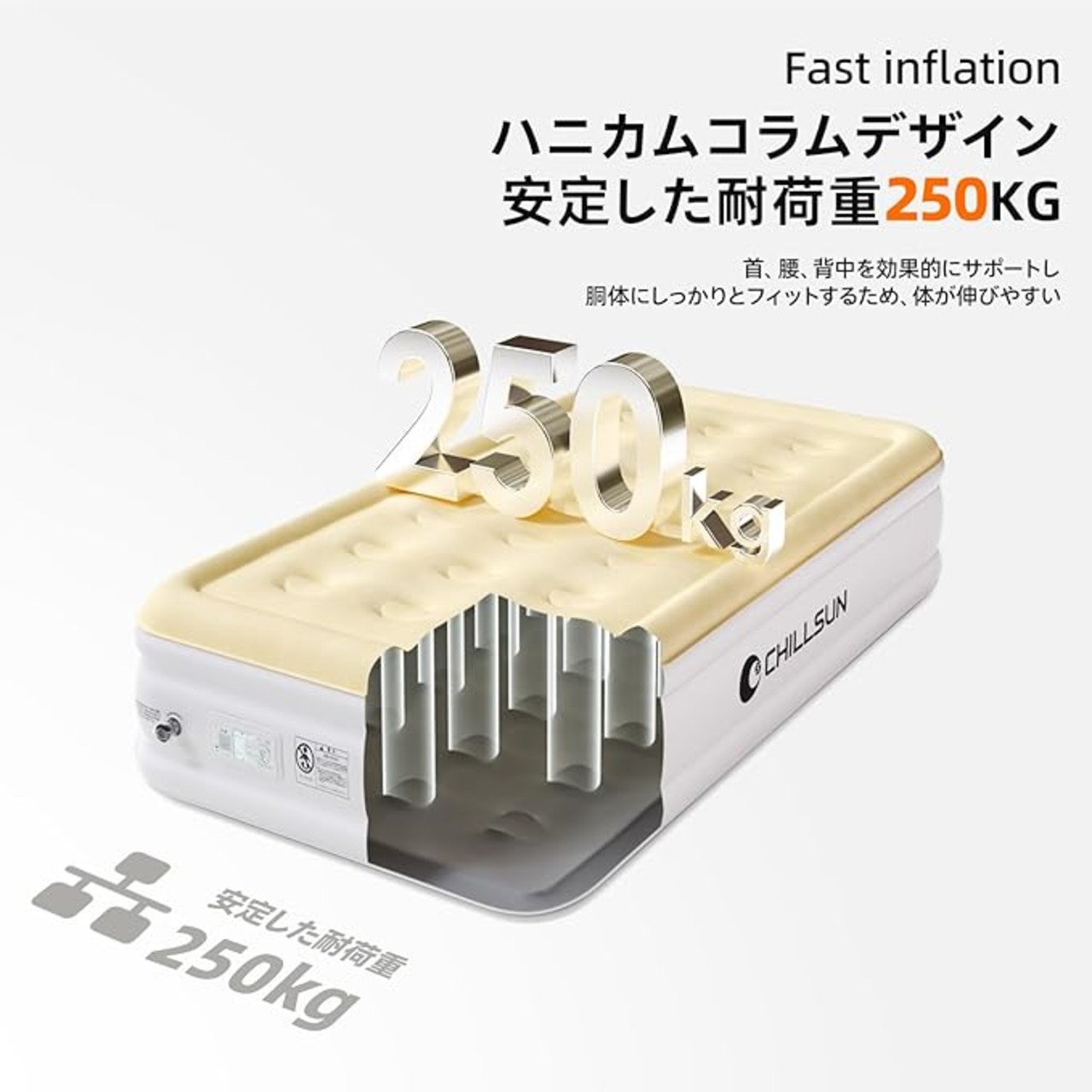 CHILLSUN 電動エアーベッド シングル サイズ 耐荷重350kg エアーマットレス キャンプ 電動ポンプ内蔵 極厚 膨脹式 折り畳み 収納袋付き 長さ190 幅99 厚さ40