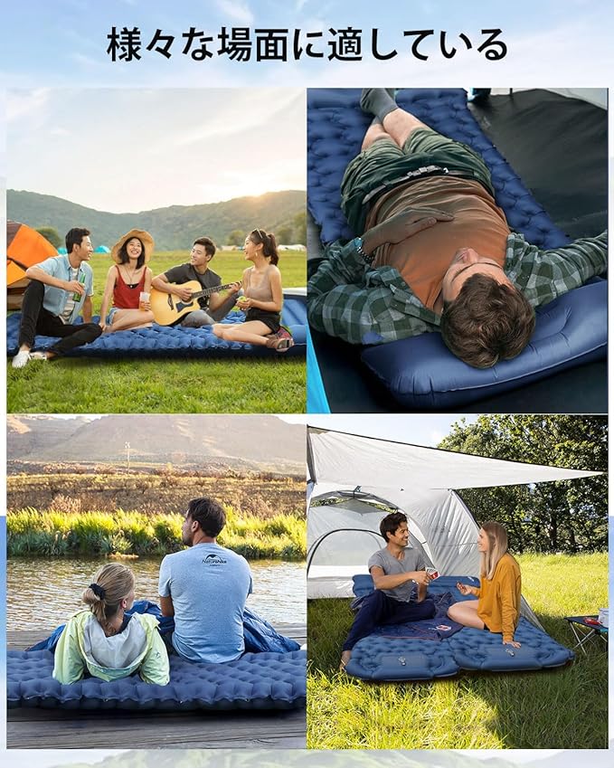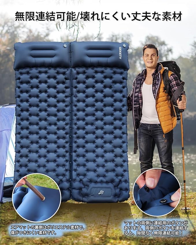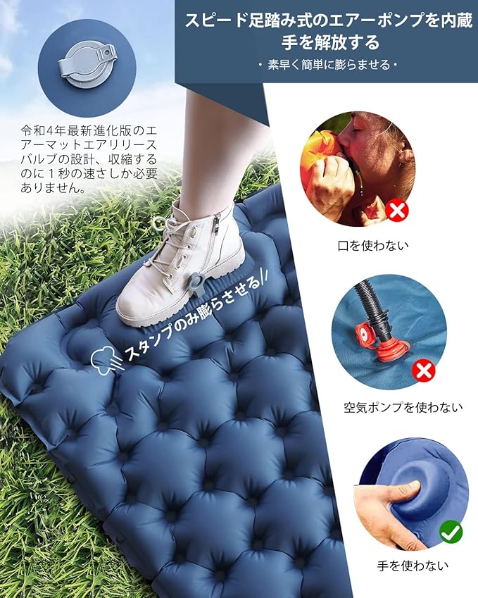 エアーマット キャンプマット 車中泊【10cm厚さ・無限連結可能!】 防災 エアベッド 足踏み式 枕付き 30s膨らむ コンパクト 軽量 防水 災害用 キャンプ用品 持ち運び便利 簡単収納 災害マット 登山 収納袋付 エアマット | KAZESHOP