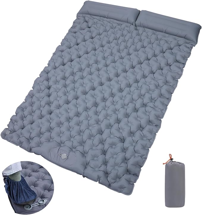 【足踏式】このエアマットは、別途ポンプを購入する必要なし。内蔵の足踏み式ポンプで約3分で膨らみます。ダブルバルブ設計で空気漏れの心配もなく、変形の心配もありません。足カバーが付属しており、自由にご利用いただけます。