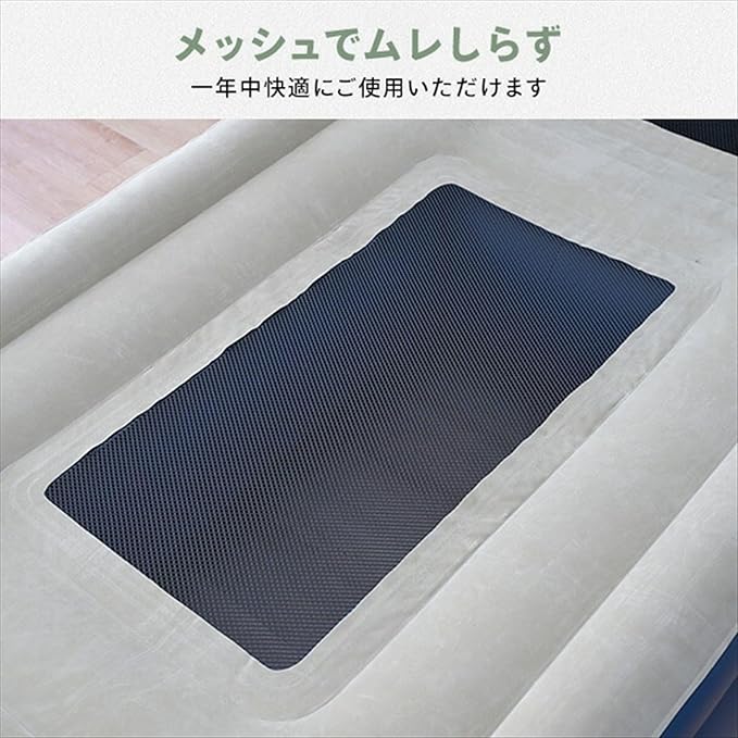 [キャンパーズコレクション 山善] コードレスポンプ内蔵 電動エアベッド 極厚 メッシュ シングル 幅100 奥行200 高さ45cm 注入・排出両方できる ネイビー CGAB-002M(GY/NV) | KAZESHOP