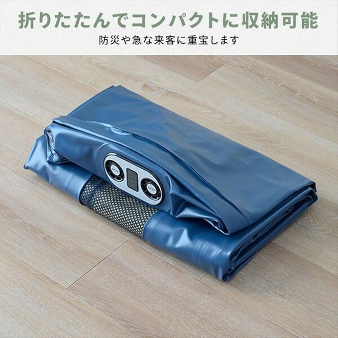 【約150秒で空気注入完了】ボタン一つで簡単・すぐに空気の注入・排出ができるエアーベッドです。キャンプや車中泊、防災対策、来客用にオススメです。厚みが約45cmあり底付き感なく使え、立ち座りもしやすい高さなので簡易ソファとしてもお使いいただけます。