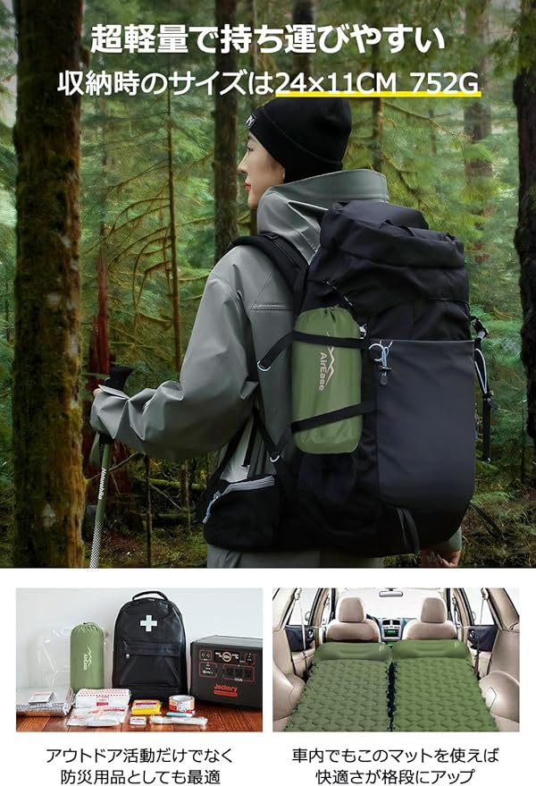 【携帯に便利・あらゆるシーンで大活躍】重さはわずか約752g、折り畳み後のサイズは24*11cmとコンパクト。バックパックにすっきり収まり、持ち運びも楽々です。キャンプ、登山、車中泊、災害時の備えとしても最適で、どこへでも気軽に持って行けます。いつでもどこでも最高の睡眠環境を提供します。