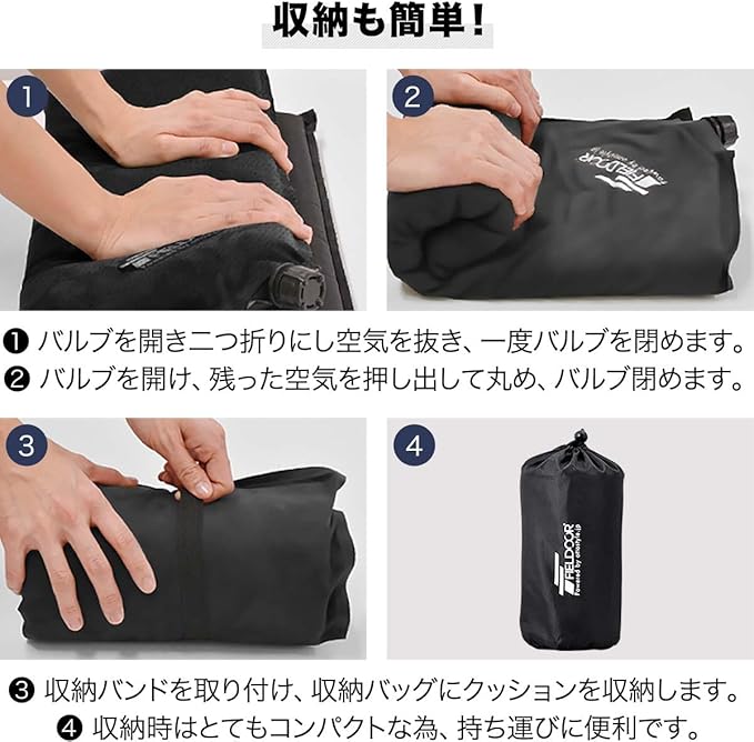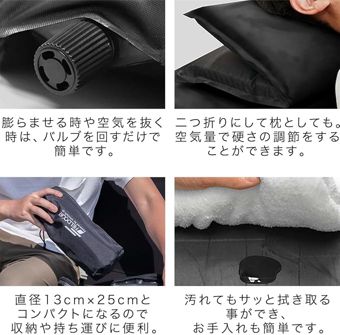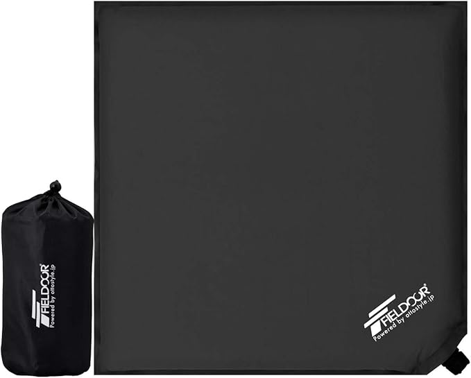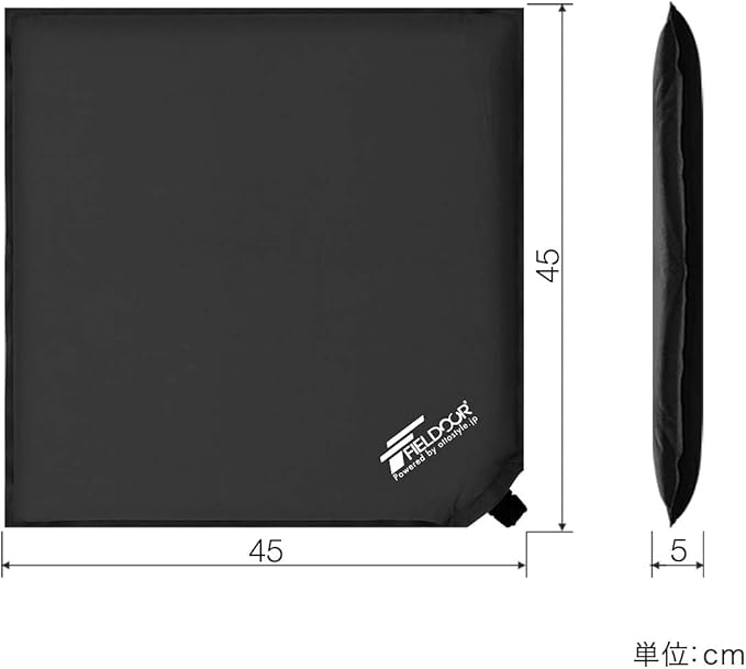 FIELDOOR インフレータブル エアクッション アウトドア 高密度ウレタンフォーム / 24mm大型バルブ 幅45cm 奥行45cm 高さ5cm 座布団 キャンプ レジャー 【ブラック】 | KAZESHOP
