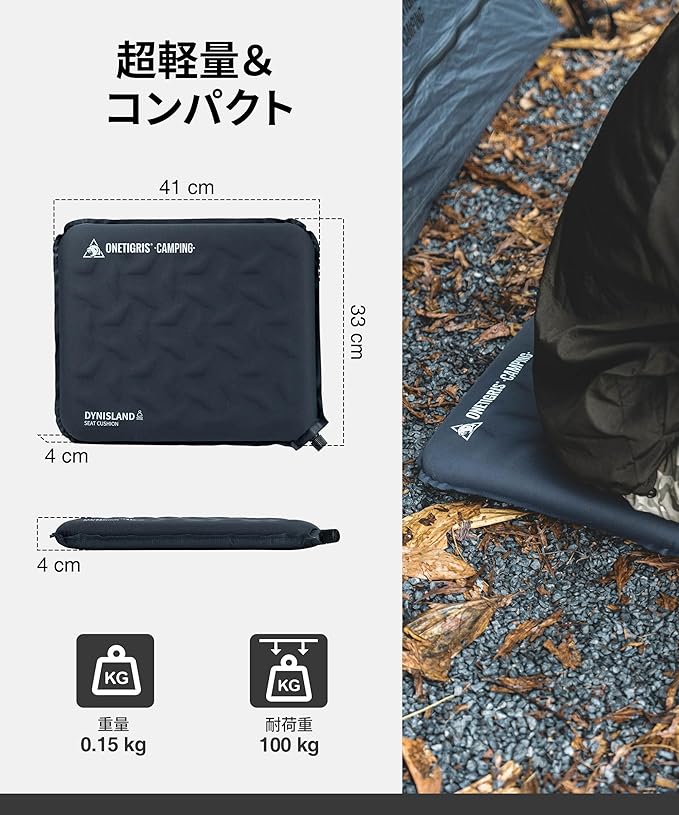 OneTigris DYNISLAND アウトドア 座布団 エアクッション 自動膨張 折りたたみシート 高反発 超軽量150g 耐荷重100kg 撥水 通気 無臭 快適 静音 滑り止め 持ち運び便利 オールシーズン 収納袋付き アウトドア キャンプ ツーリング レジャー 部屋用 | KAZESHOP