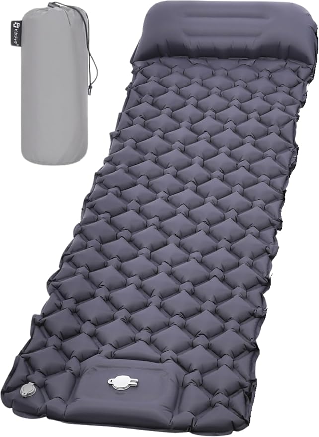 エアーマット 足踏み式 ポンプ不要 補修シール付 【防災防犯対策 反射収納袋付き】 車中泊マット 枕付き アウトドア 災害用 寝袋 厚手 防水 軽量 持ち運び便利 カンタン収納 【防犯防災ブランド ピカジャケ】 (1, グレー) | KAZESHOP