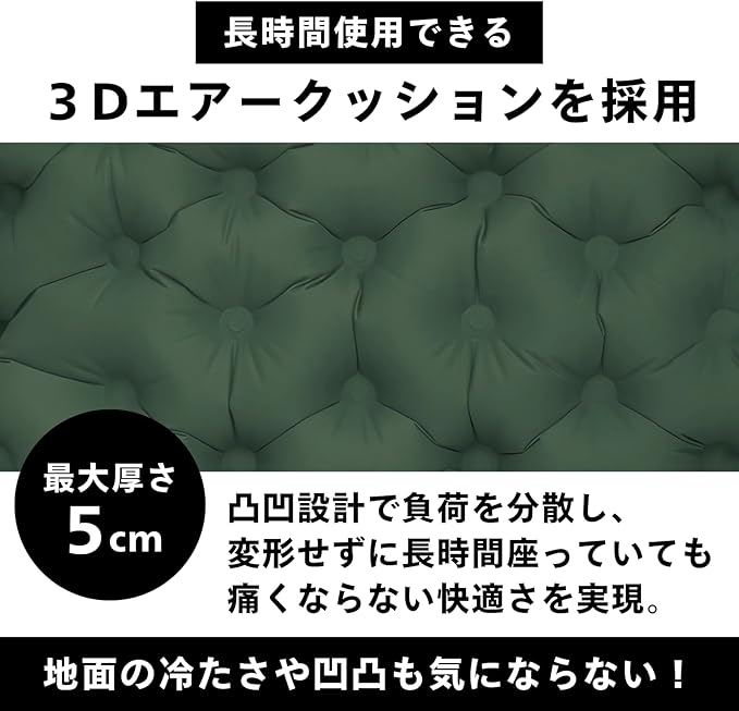 エアーマット 折りたたみマット クッション エアー座布団 キャンプ アウトドア コンパクト レジャーシート 軽量 花見 運動会 スポーツ観戦 防水 一体化空気入れ付き 肉厚5cm 3D構造 登山 (フォレストグリーン) | KAZESHOP