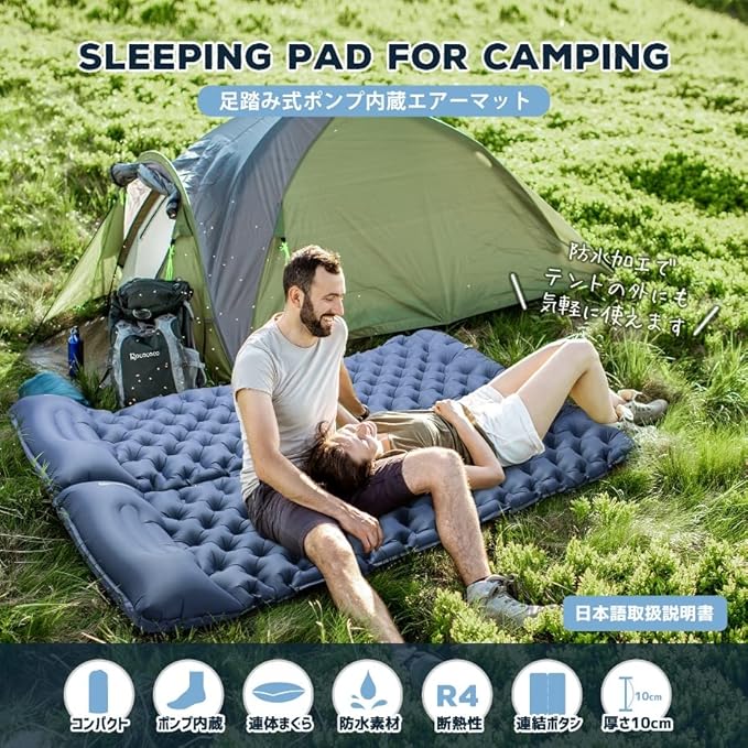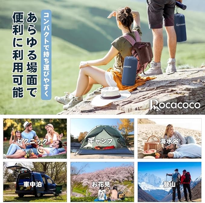 ⛺【高い耐久性、エコ素材、汚れにくい】Rocacocoのエアーマットは高品質で破損しにくい400ナイロンと多層構造のTPU素材を採用しております。最大耐荷重300kg、生地も耐水加工を施しており汚れても濡れたタオルなどで簡単に拭きとれます。