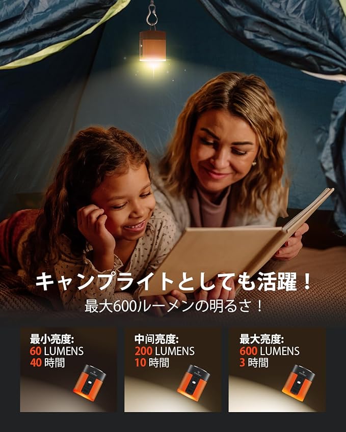 600ルーメンキャンプライト:エアマットレスポンプだけでなく、AIR 3空気入れ 電動には非常に明るいLEDライトが搭載されており、目的に応じた3つのモードを提供します。60ルーメンのソフトライト、200ルーメンの読書ライト、600ルーメンのアウトドアライトです。