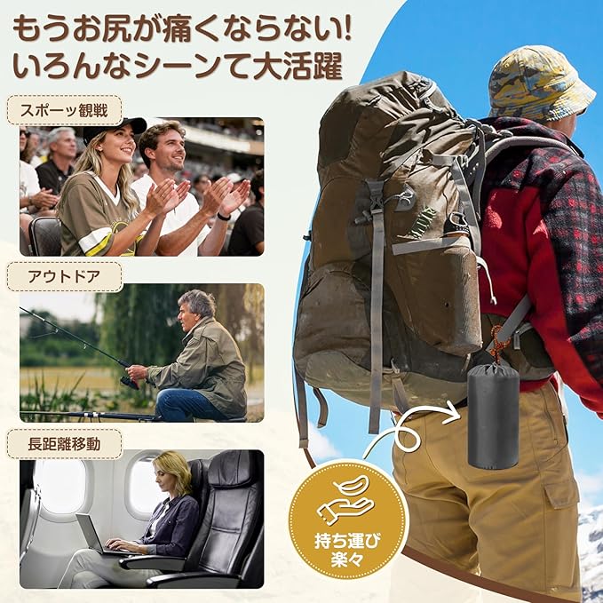 ⛺【軽量で持ち運びに便利】クッションの重さが235gと軽くてコンパクトなので、バックパックの中でも邪魔になりません。ミニ座布団や携帯座布団としても重宝し、アウトドア座布団や飛行機 クッションとしても活用可能。 野外コンサートやスポーツ競技、長距離の移動など、荷物をできるだけ減らしたいシーンで真価を発揮するエアクッションです。