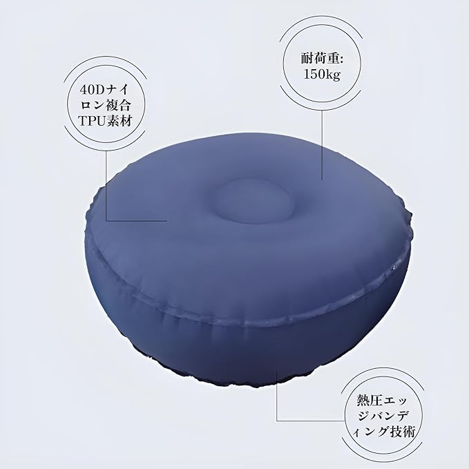 ポータブルエアークッション 折りたたみ式座布団 軽量 コンパクト 耐荷重150kg 40Dナイロン 防水仕様 キャンプマット 花見 キャンプ アウトドア レジャー用 エアーマット 持ち運び 収納便利 | KAZESHOP