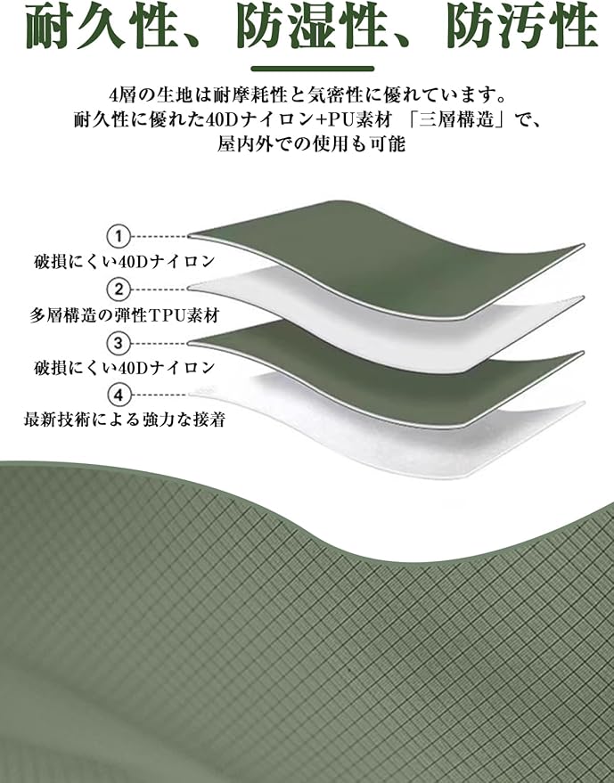 【高品質材採用&耐久性抜群】折りたたみ座布団は耐久性と防水性能に優れます。三層構造で表面には耐摩耗性の高い40Dナイロン生地を使用し、屋内外での使用も可能にしました!収納ケースはシリコン素材を採用しており、突然の雨も怖く無い。生地は耐水加工を施しており、汚れがついた場合は、中性洗剤を使い、ブラシまたはタオルで汚れを拭き取ってください。その後、自然乾燥してください。使用後はコンパクトに折りたたんで収納可能。軽量設計で持ち運びに便利でありながら、必要時に素早く展開できるため、さまざまなシーンで重宝します。家族や友人と共有して使うのもおすすめです。