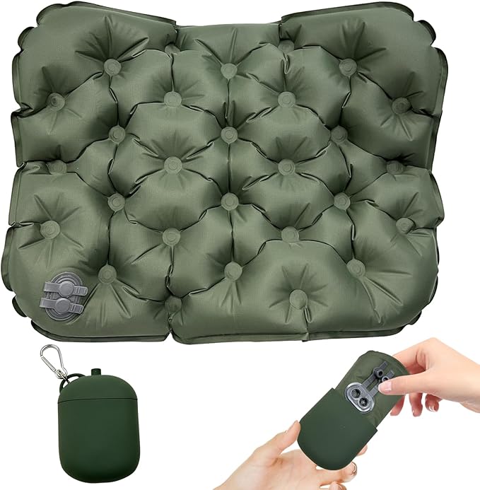 折りたたみマット エアー 座布団 シート エアークッション インフレータブルクッション 5cm厚 収納ケースが空気ポンプ付き レジャーシート 自動膨張 3D 体圧分散 エアーマット (グリーン) | KAZESHOP