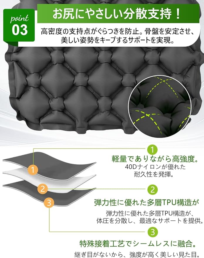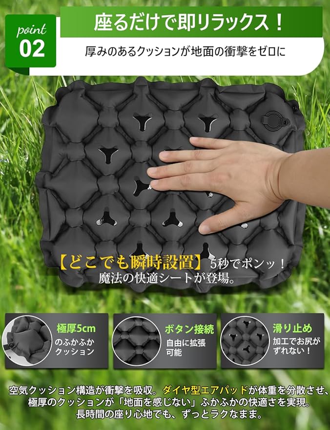 エアクッション レジャーシート 厚手 一人用 エアー 座布団 3D 体圧分散 折りたたみ座布団 軽量 「空気感」防水 飛行機 夜行バス 花見 釣り 公園 バス 【日本語取扱説明書付き】 | KAZESHOP