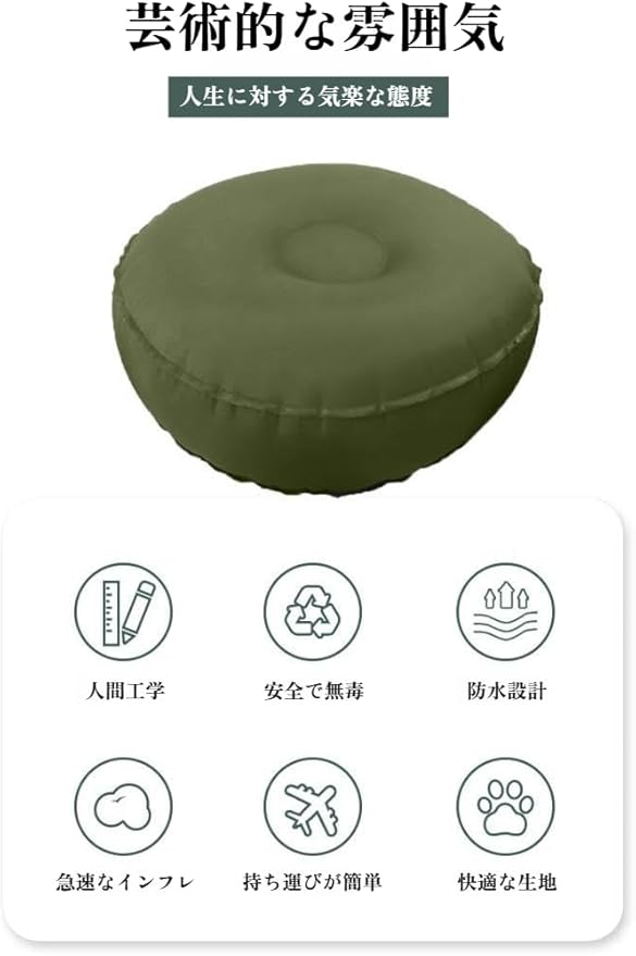 [qiukala]ポータブルクッション (折りたたみ/軽量 コンパクト) 折りたたみ座布団 エアークッション 40Dナイロン複合TPU 耐荷重150kg 防水 座布団 軽量 コンパクト キャンプマット エアーマット アウトドア マットエアクッション レジャーシート 花見 キャンプ アウトドア用品 | KAZESHOP