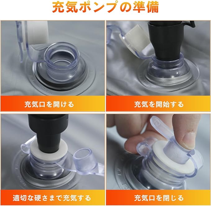 【3~5分で簡単セットアップ】電動ポンプ付きしゃちゅうはく マットレス付属の電動ポンプを使用すれば、約3〜5分でスピーディーに膨らませることができます。(ご注意:作動中は多少の音が発生しますが、一般的な許容範囲内なのでご安心ください)。使い終わったら空気を抜いて折りたためばコンパクトなサイズになり、付属収納バッグにスッキリ収まります。