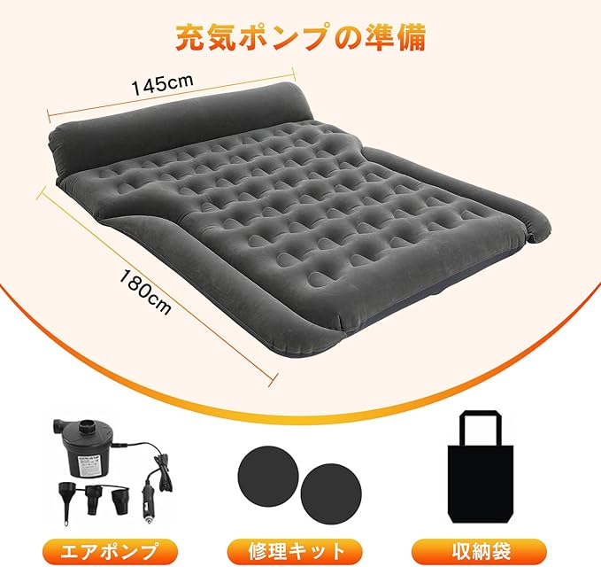 【修理キット付きで長く使える】万が一小さな穴や擦り傷ができても、付属の専用修理キットで簡単に補修可能。買い替えの心配が少なく、長くお使いいただけます。【多用途で大活躍】車中泊はもちろん、キャンプ、アウトドア、来客用の簡易ベッド、さらには災害時の備えとしても活躍。1つ持っておけば幅広いシーンで便利にご使用いただけます。