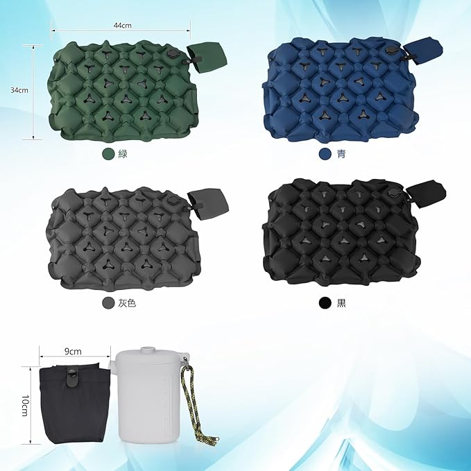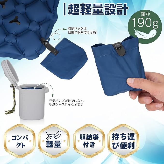 【軽量で持ち運びに便利】セットの重さは約189.5グラムで、軽量です。収納ケース付き、収納袋とエアークッションには連結ボタンがあり、空気を抜くと手のひらサイズに折りたたみ収納でき,持ち運びに便利グッズです