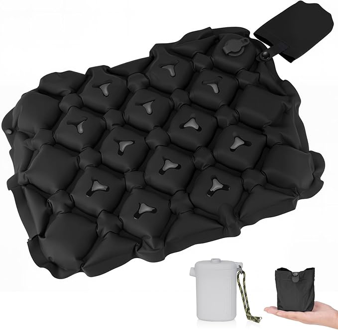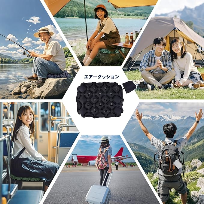 エアークッション 折りたたみクッション 折りたたみ座布団 【底部ナノ滑り止めシリカゲルデザイン】 アウトドア 便利グッズ 携帯 持ち運び 軽量 コンパクト 収納ケース付き ポンプ付き 厚手 1人用 旅行 山登り 釣り スポーツ観戦 キャンプ 花見 日本語の使用説明書付き(ブラック) | KAZESHOP