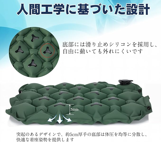 【人間工学に基づいた設計】エアークッションは花のような突起のあるデザインで、約5cm厚手の底部は体圧を均等に分散し、快適な着座姿勢を提供し、お尻が痛くならないです。底部には滑り止めシリコンを採用し、自由に動いても外れにくいです