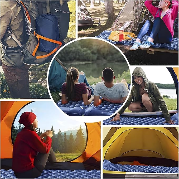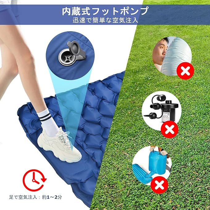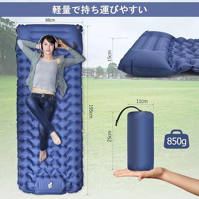 エアーマット キャンプ マット【2025NEW・足踏み式空気注入・厚さ10cm】無限接続可能 車中泊 防災 厚手 枕付き 超軽量 コンパクト 防水 寝袋 持ち運び便利 簡単収納 災害 登山 キャンプ用品 テント 収納袋付き 修復テープ 3付属 ブルーモデル | KAZESHOP