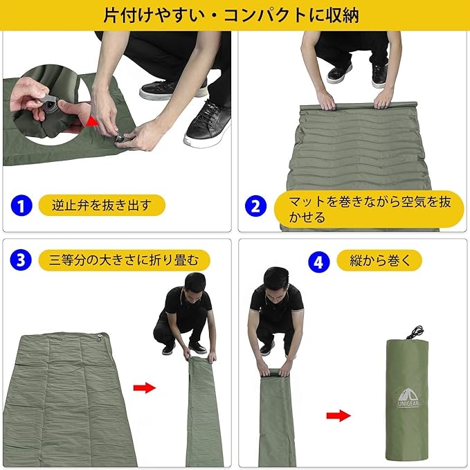 Unigear エアーマット キャンプ マット テント マット 超軽量 コンパクト 寝袋 マット 耐水加工 40Dナイロン&TPU 防水 防潮 車中泊 山登り テント泊 アウトドア 防災用品 キャンプ 用品 エアーピロー付き 収納袋付き 190cm 66cm 5.5cm | KAZESHOP