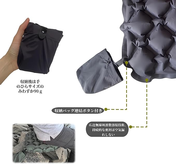 【超コンパクト&超軽量】小型坐垫手掌般般大小,一只手可握(10*10*4cm) 90g 重量,坐垫有按扣收纳便携,また、複数のクッションをリンクするのにも便利で、もう1つのクッションのボタンを接続するだけでOKです多様な使用シーン:ハイキング、キャンプ、釣り、試合演出、オフィス、自宅、老若男女すべて使用可能