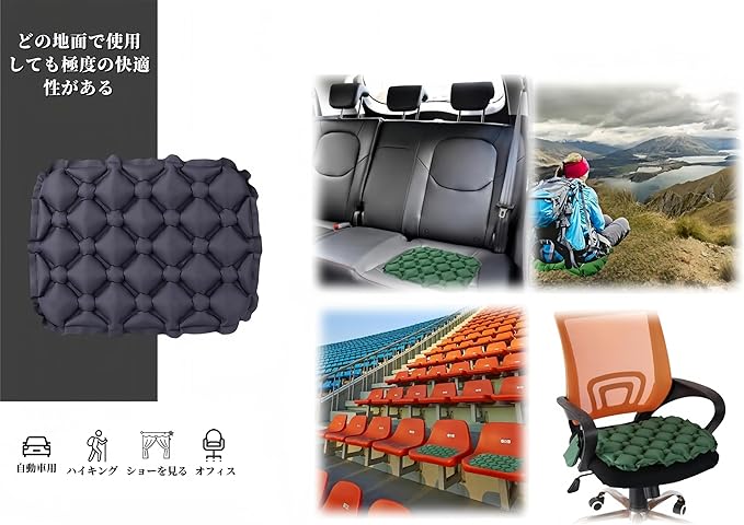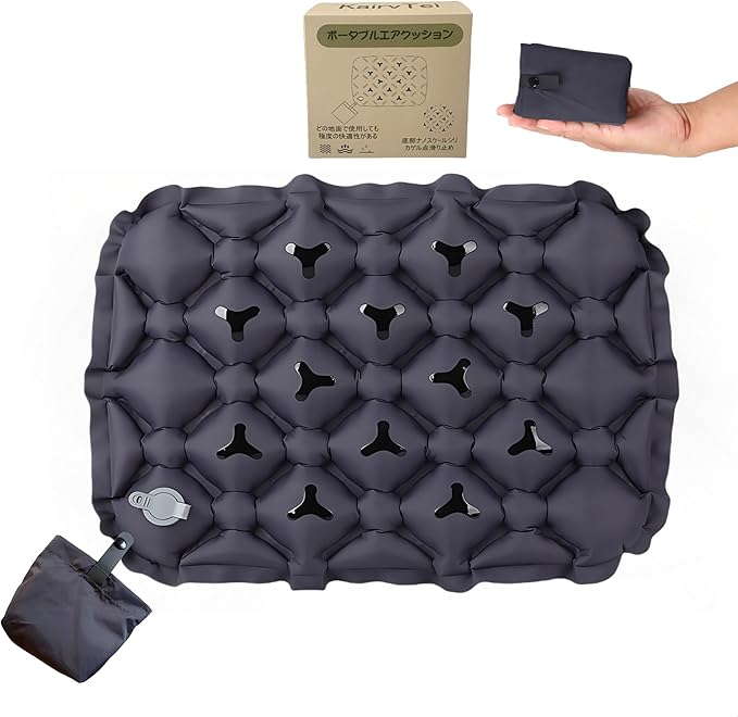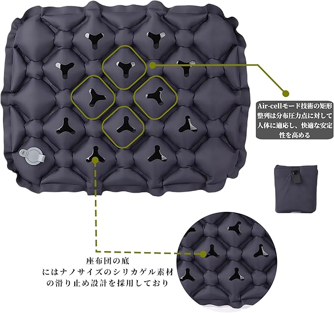 エアー 座布団 お尻 シート クッショ 折りたたみ座布団(1人用 5cm厚 軽量 底部ナノ滑り止めシリカゲル設計) 長時間座っていても移動しない コンパクトキャンプマット レジャーシート トレッキング、インフレータブルクッション 飛行機 夜行バス 花見 キャンプ アウトドア用品ボタン付き収納が便利 (グレー) | KAZESHOP