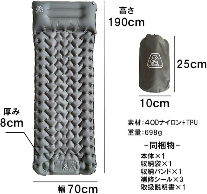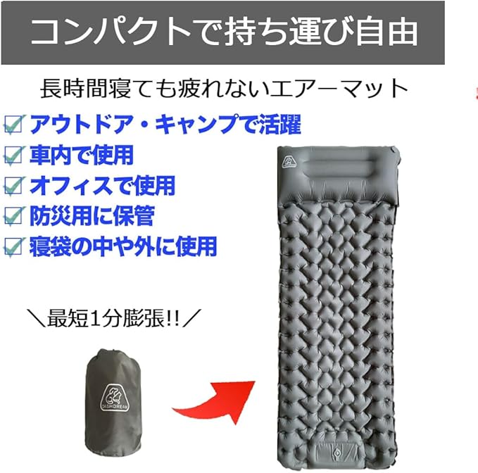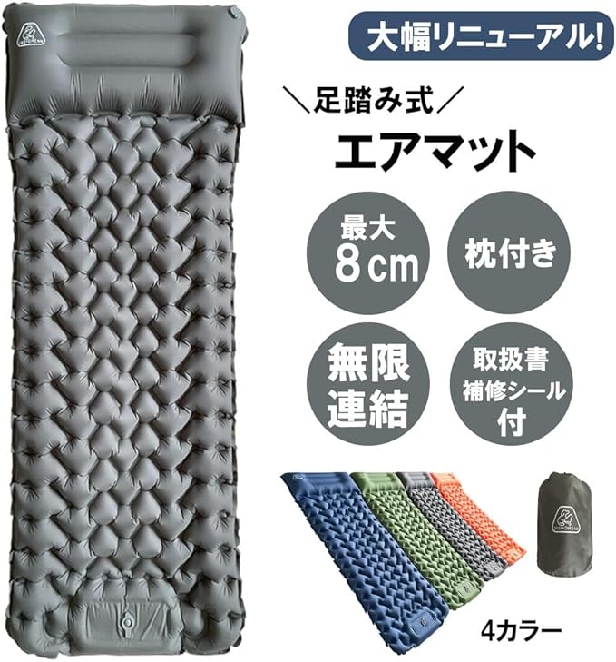 】エアーマット DASHDREAM キャンプ マット 車中泊マット 足踏み式 無限連結可能 枕付き キャンプ エアーマット 災害マット キャンプ用品 テントマット 車中泊 厚手 軽量 コンパクト 防水防潮 持ち運び便利 簡単収納 収納袋付き | KAZESHOP