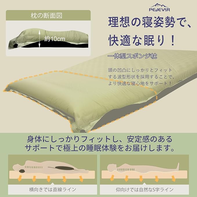 キャンプマット 折り畳み エアーマット 一体式枕付き 車中泊マット 7~10cm 厚手 30秒自動膨張 軽量 インフレーターマット 無限連結可能 来客用 防災対策 持ち運び便利 アウトドア マット コンパクト 簡単収納 収納袋付き | KAZESHOP