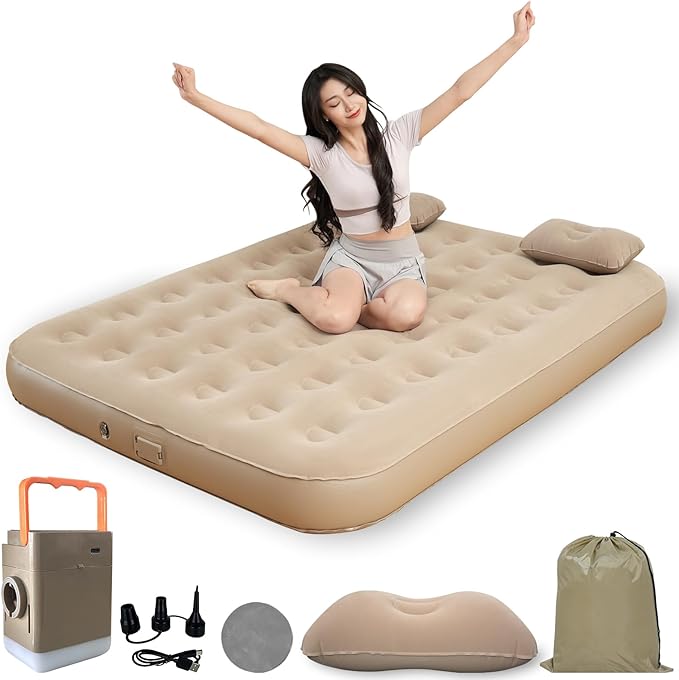 エアーベッド 電動 フロッキーエアマットレス 内蔵電動ポンプ付き キャンプ用マット 電動エアベッド 簡易 防水・通気性 快適・コンパクト・便利 自動膨張・ワンタッチ排気 枕付き・収納バッグ付き 来客用・緊急時の防災・車内キャンプ・引越し・家庭用・アウトドア活動に最適 耐荷重300kg Type-C充電式 | KAZESHOP