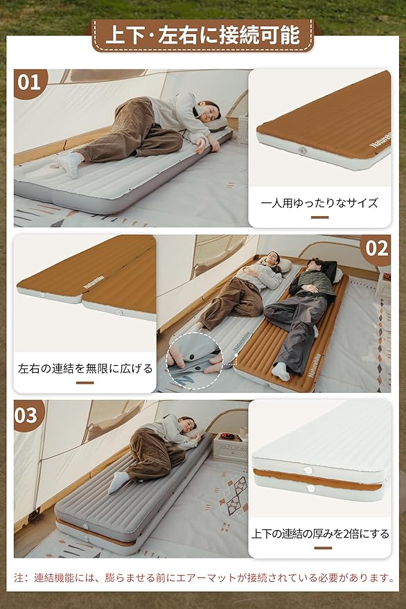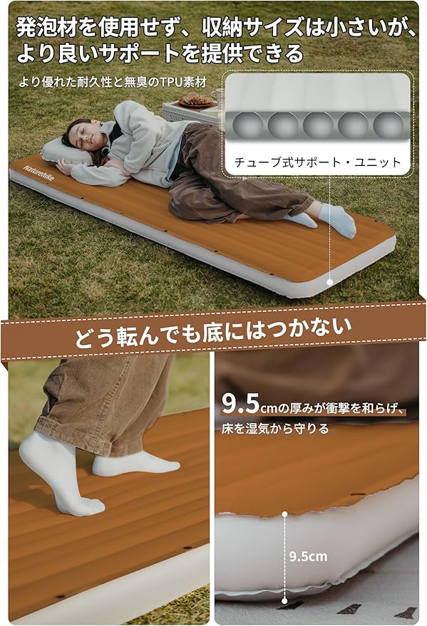 Naturehike 公式 エアーマット 9.5cm厚さ 無限連結可能 TPU 耐久性 インフレータブルバッグ付き 静音 快適 車中泊 テント泊 キャンプ用 防災用 家庭用 来客用 収納袋付き | KAZESHOP