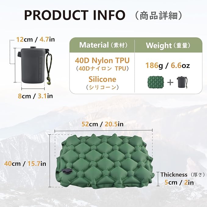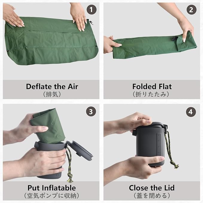 ✅【軽量コンパクト】-- エアークッションと空気ポンプを合わせても重さはわずか約184g。折りたたむとポンプ内にすっきり収まり、サイズは約5 8 12cmとコンパクト。バックパックやハンドバッグに入れて、簡単に持ち運べます。