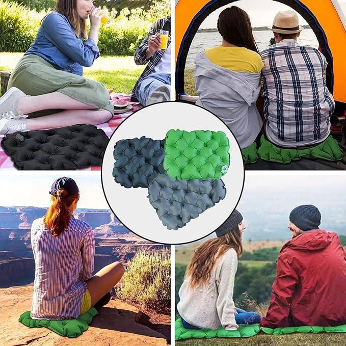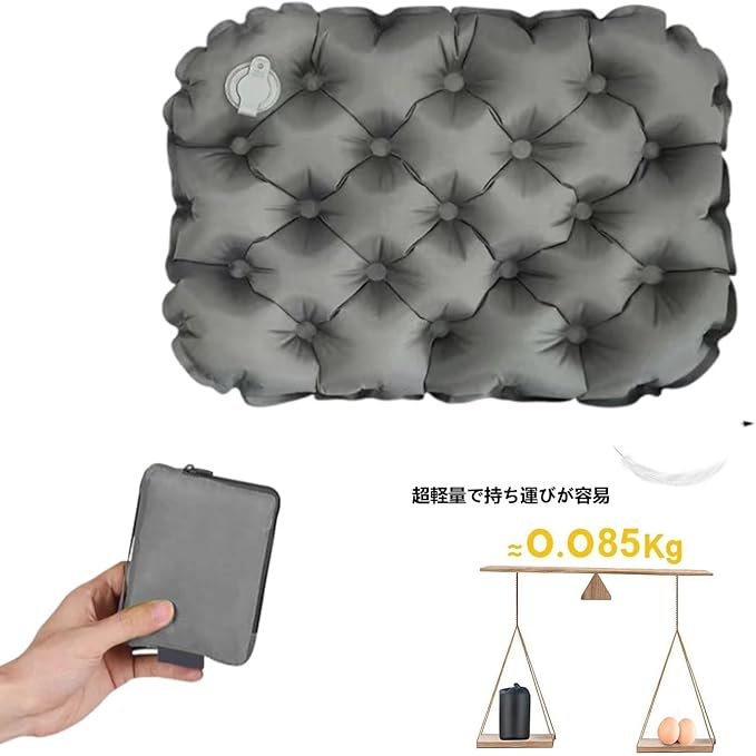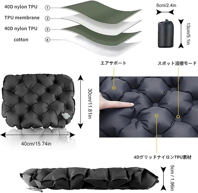 エアークッション座布団 携帯座布団 収納ケース付きハイキング、花見、スポーツ観戦収納ケース付きエアーマット(は1口吹くだけ/折りたたみ/軽量/コンパクト/横40 縦30 厚さ5cm) | KAZESHOP
