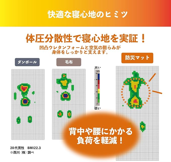◆もしもの時に備えたい。自動膨張式で道具がいらず軽量コンパクト、睡眠のプロが作った防災マットです。避難先の硬い床や床の冷え込みから守ります。