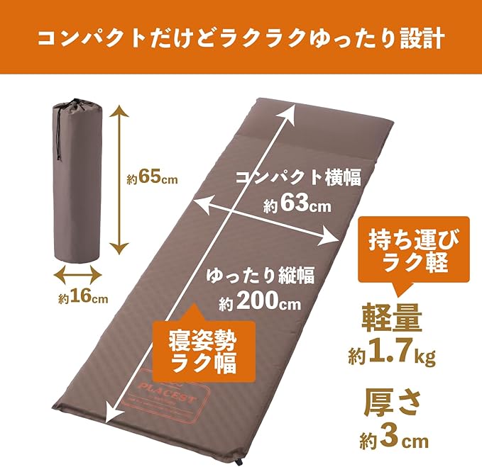 特徴 自動膨張、滑り止めベース、圧力分散フォーム。
