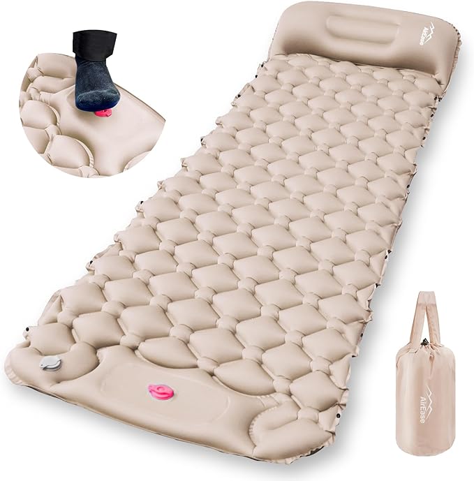 【25秒で素早く膨らむ・足踏み式】革新的な足踏みポンプを内蔵し、25〜60秒でマットが完全に膨らみます。手動や追加のポンプ不要で、わずかな時間で準備完了。空気の放出はわずか1秒で簡単に行え、撤収もストレスフリー。さらに、アップグレードされたダブルバルブ設計により、空気漏れの心配もなく、夜中にマットがへたる心配はありません。これで、準備の時間を大幅に短縮し、もっと自然を楽しむ時間を増やせます。