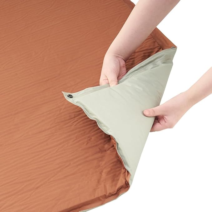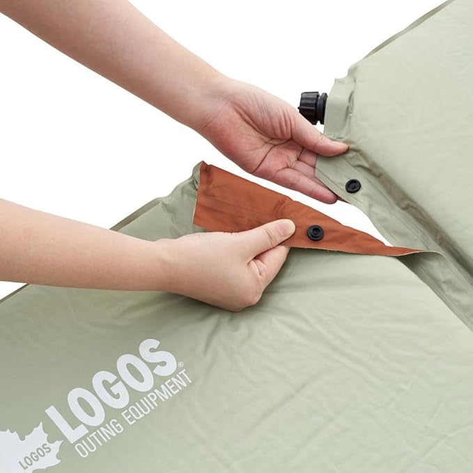 バルブをひねると空気自動注入開始!さらに超厚55mm!寝心地を追求。気分に応じて使い分け、カラーリバーシブルデザイン。複数を連結できる薄ボタン リンク構造。収納バッグ付。