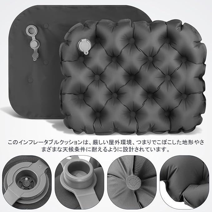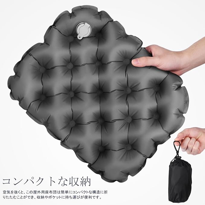 LIOOBO ポータブル インフレータブル シートクッション 軽量 エアークッション 収納ポーチ付 キャンプ ハイキング 屋外用 15.7X11.8X2.8インチ 旅行 快適シートパッド | KAZESHOP