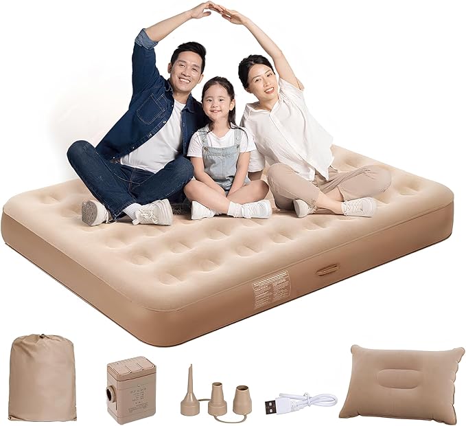 エアーベッド エアーマット 空気ベッド 電動ポンプ内蔵 ダブル キャンプ マット 折り畳み式 電動ベッド 耐荷重300kg 通気性・快適性・便利性 寝室/オフィス/キャンプ/テント/旅行/アウトドア/防災用 エアー枕 収納バッグ付き 200*150*25cm [並行輸入品] | KAZESHOP