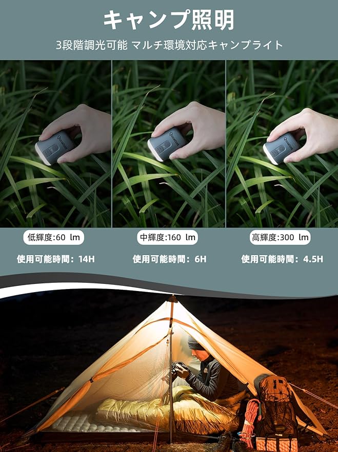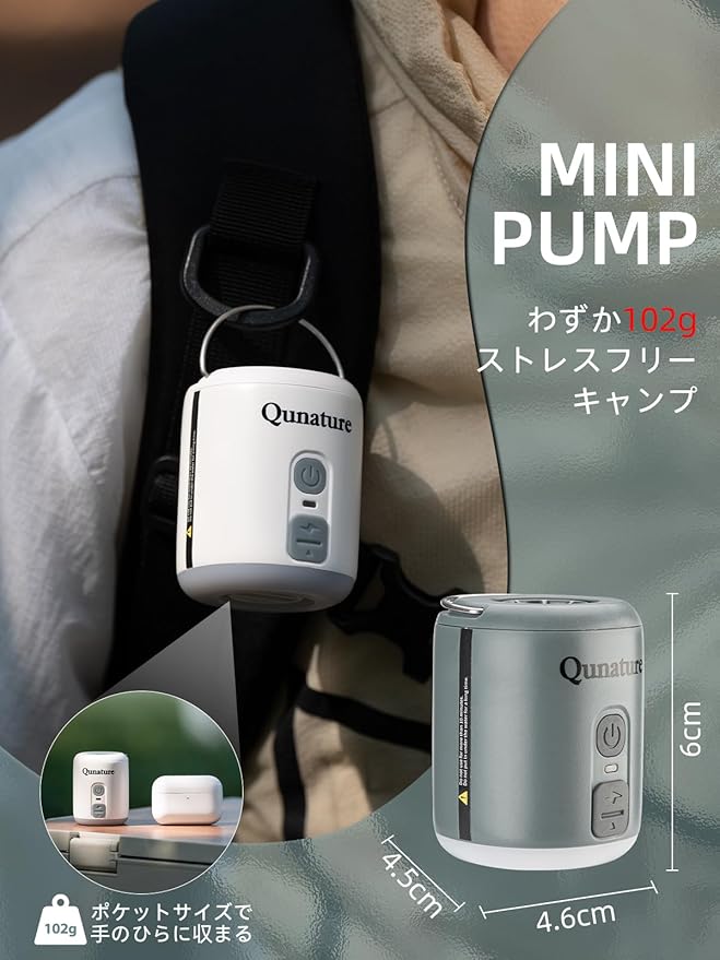 【超軽量&超便利】わずか102g、ワイヤレスイヤホンケースのように手のひらに収まるサイズで、持ち運び楽々!上部にハンドルが付いており、バッグやベルトに簡単に取り付け可能。また、持ち運びと収納に便利な巾着袋も付属しており、アウトドアでも日常でもスムーズに携帯できます!